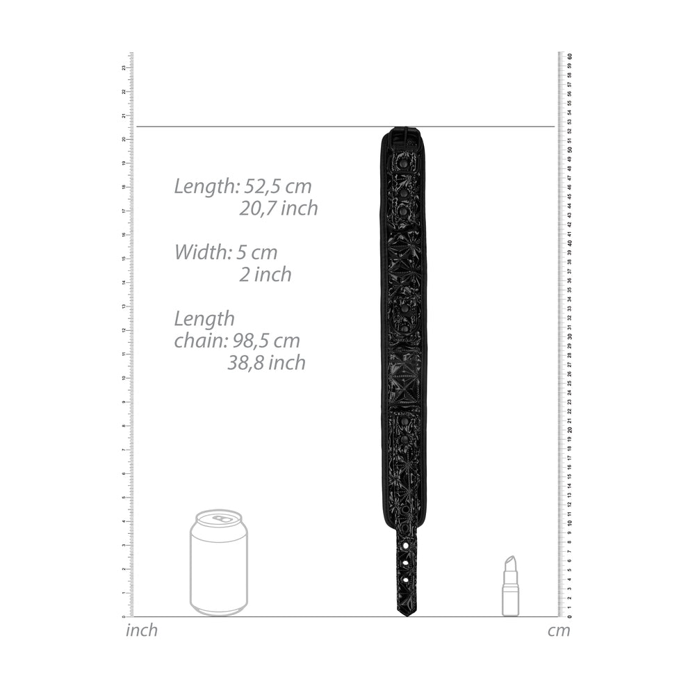 Whether seeking total control, exploring sturdy comfort, or simply honouring your power exchange with diamond pattern elegance, this Ouch Luxury Collar With Leash invites you to experience controlled awakening. When total control is what you need, this sturdy yet comfortable collar with attached leash ticks all the boxes! The diamond pattern design with stylish neoprene and faux-leather ensures visual appeal and comfort, the five holes provide sufficient adjustability to fit most, and the 52.5cm length with 5cm width offers secure fit. The robust black chain 98.5cm attaches with lobster clasp to the secured O ring on the collar and combines with comfortable handle. Total control achieved!
